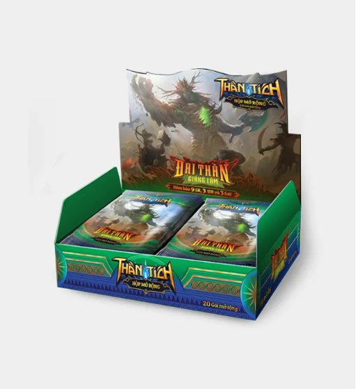 Hộp mở rộng Thần Tích mùa 2 Đại Thần Giáng Lâm chứa 20 Gói Mở Rộng, và đặc biệt có “bảo hiểm” về mặt tỷ lệ ra bài hiếm: chắc chắn nhận được ít nhất 9 lá SR, 3 lá UR và 3 lá foil lấp lánh. (khác với mùa 1 chỉ có 1 foil)