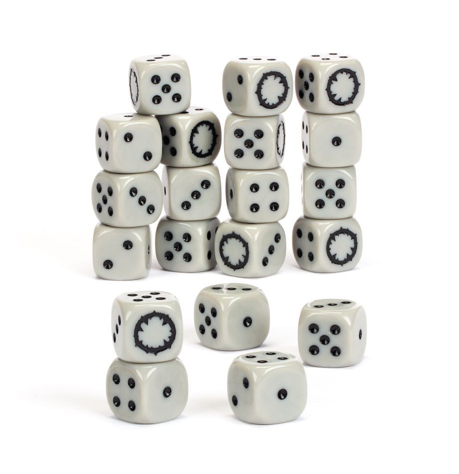 Bộ sản phẩm này bao gồm 20 viên xúc xắc sáu cạnh, tròn, có kích thước 16mm dọc theo mỗi cạnh. Chúng được đúc bằng màu xám đá, nhạt với các pips đen và biểu tượng Ogor Mawtribes trên mỗi mặt 6 chiếc.