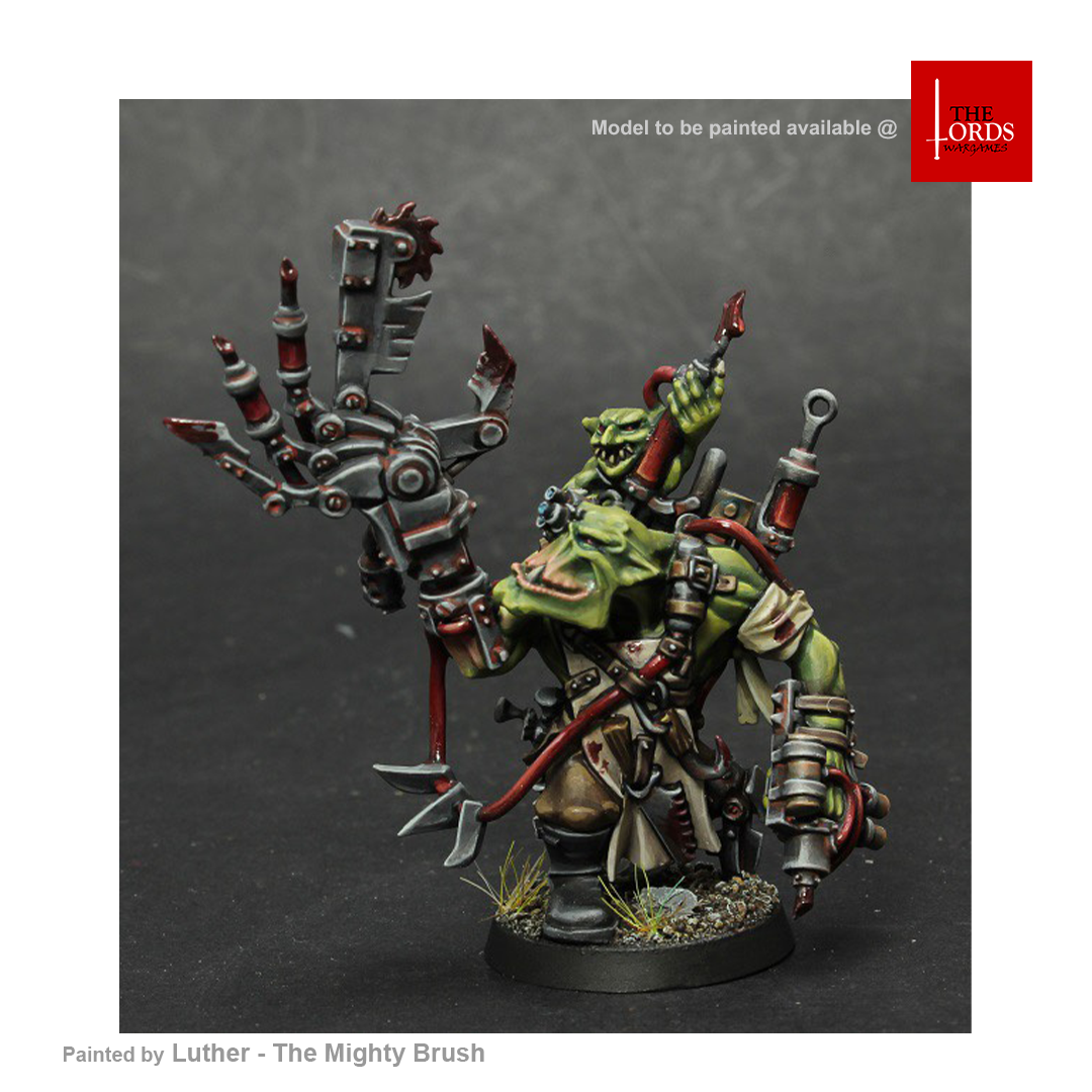 Mô hình nhựa Painboy này đi kèm với một hộ lý grot,hắn được trang bị với Dok’s tools và một ‘urty syringe. Đi kèm theo một đế tròn 32 mm.