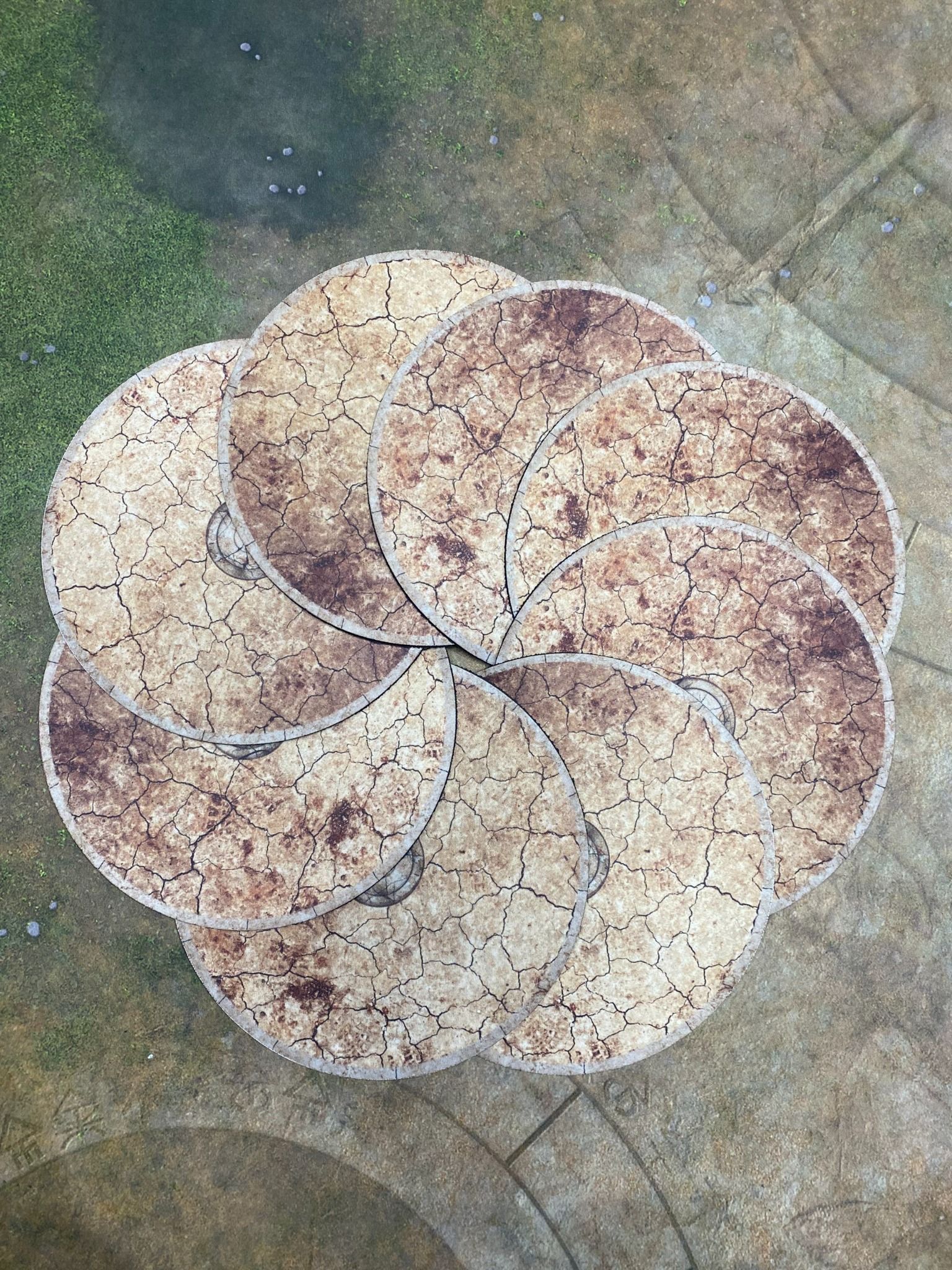 Objective Markers cho Warhammer 40K, AOS với base 40mm được đánh dấu + vùng ghi điểm 3 inch với thiết kế in ấn rất chi tiết.